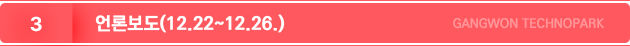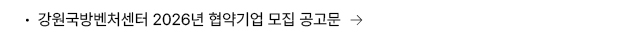 (재)강원테크노파크는 본 사이트에서 게시된 이메일 주소가 전자우편 수집 프로그램이나 그 밖의 기술적 장치를 이용하여 무단으로 수집되는 것을 거부하며, 이를 위반할 시 종보통신망법에 의해 형사처벌됨을 유의하기시 바랍니다.
